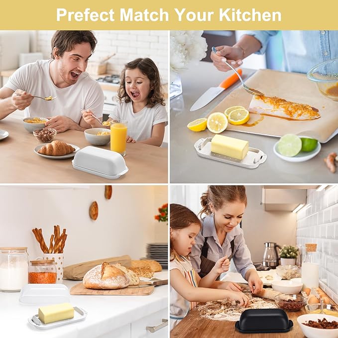 - 【Nice Gift Choose】The ideal size of the butter dish is perfect for both EAST and WEST coast Butter. Simple and modern design fits most home countertop styles and different occasions, such as Christmas, Thanksgiving Day or other memorable days