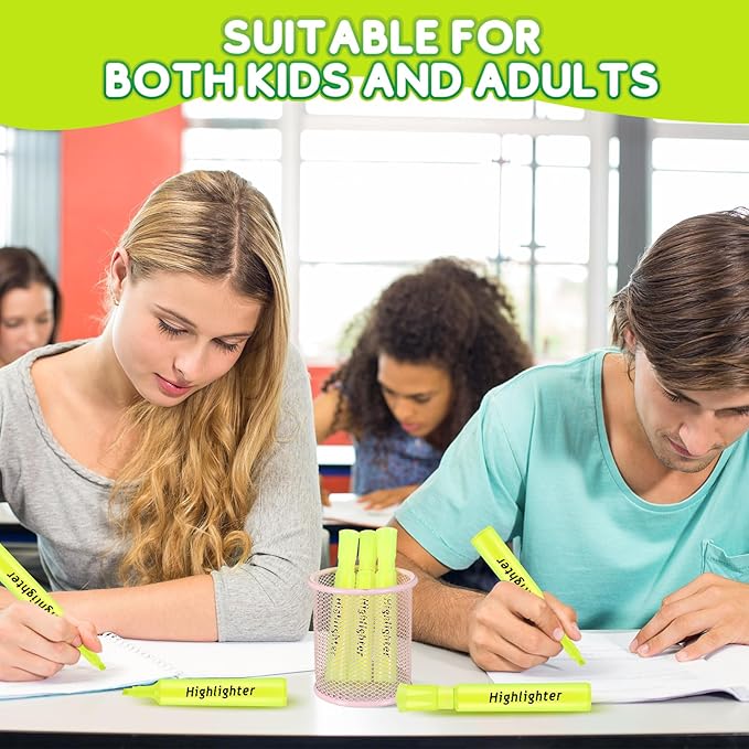 - Convenient Chisel Tip Design: our yellow highlighters come with a good chisel tip offering broad highlighting or fine underlining and allow you for creating thick and thin lines; Secure fitting caps can protect the tips when not in use