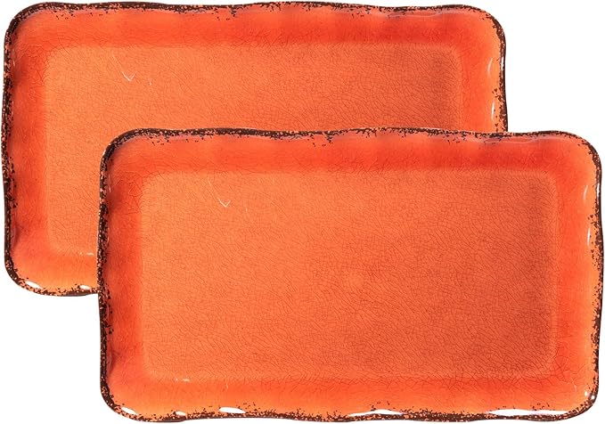 LEHAHA Melamine Serving Tray/Platters Set of 2, 17.5" x 10", 2-Piece Large Rectangular Melamine Platter Set for Serving Food, Orange