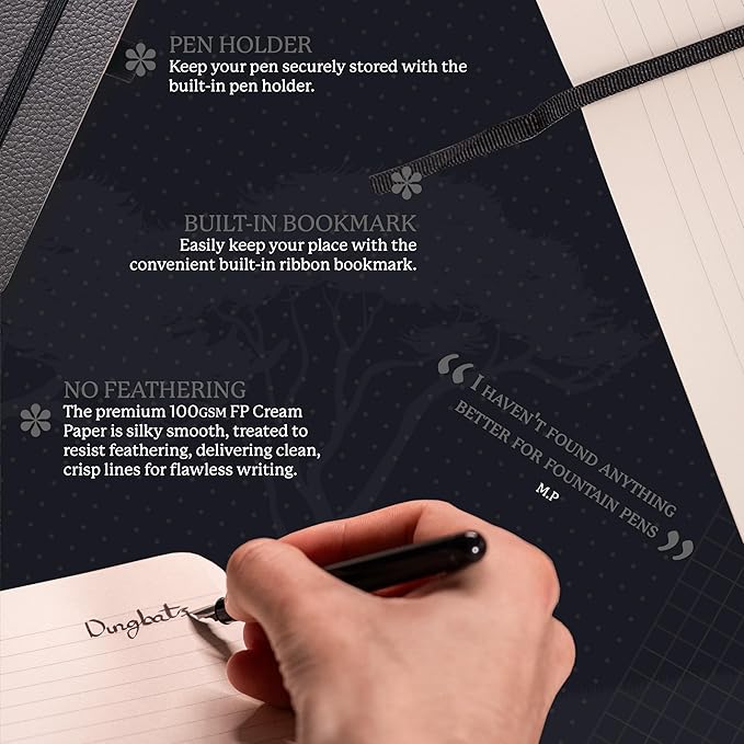 - SUSTAINABLY SOURCED, ENVIRONMENTALLY CONSCIOUS: Join us in our commitment to sustainability. Crafted from recyclable materials and FSC certified paper, our notebooks are a sustainable option and proudly Vegan Certified. Additionally, for its UK sales, Dingbats* Notebooks Ltd donates 2% of its revenue to WWF-UK, a charity registered in England and Wales (1081247).