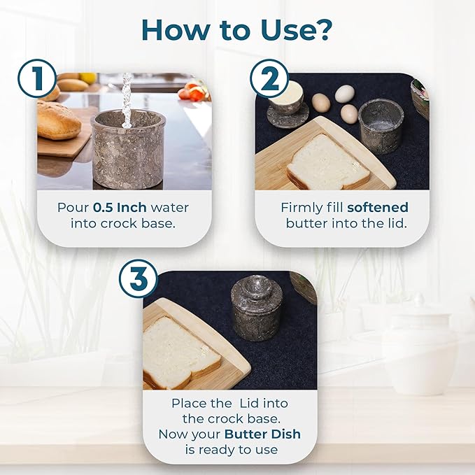 - Discover our Marble Butter Crock - The perfect blend of elegance & durability! Crafted from high-quality marble, this sturdy French kitchen essential keeps your butter fresh & accessible in style. A must-have butter keeper crock for any home!