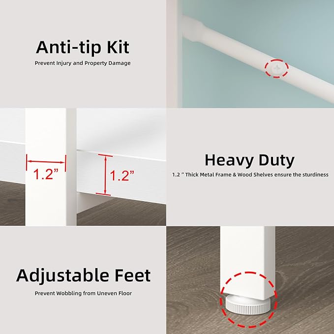 - 【Anti-Tip Kit and Easy Assembly】: Remember to install the anti-tip kit on the wall to enhance stability and reduce the risk of accidents with this industrial 4 tier bookcase. Smart design and all the included tools make assembling this white 4 shelf bookshelves and bookcases a hassle-free task.