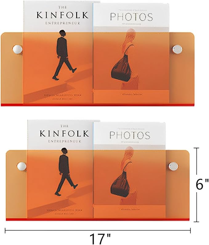 - PREMIUM MAGAZINE RACKS - Made of high quality acrylic for durability and longevity. Measures 17" x 1.5" x 6" and is 5 mm thick. 6" high provides excellent protection for magazines and books from falling.
