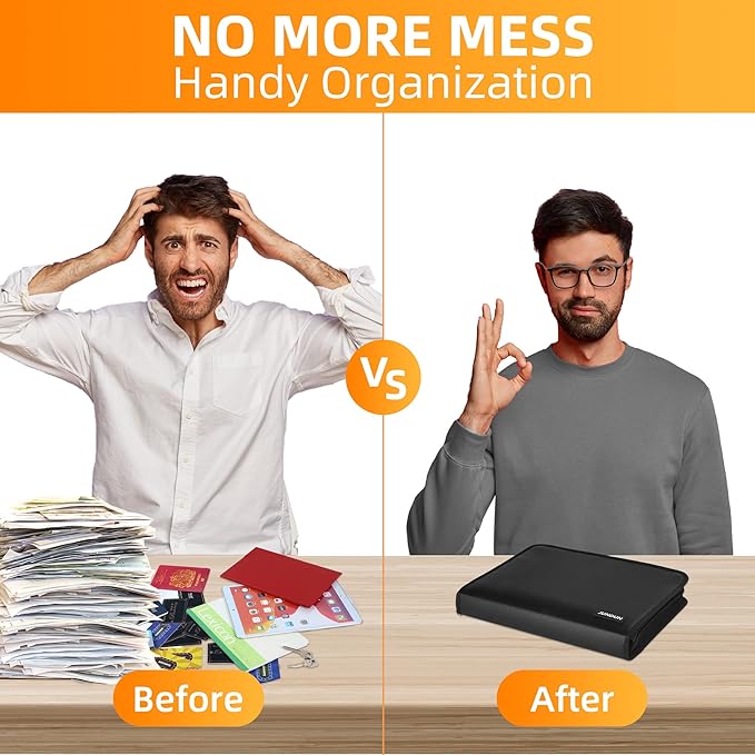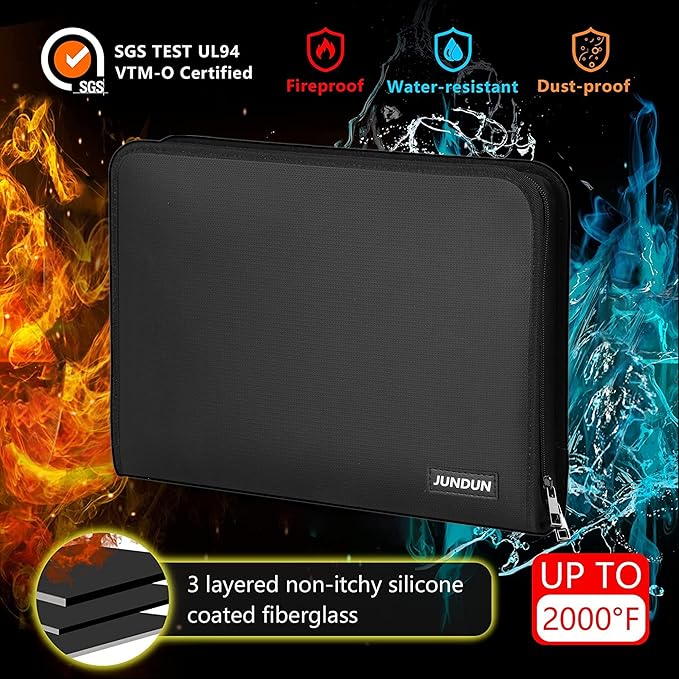 - PREMIUM MATERIALS: Secure your documents with our fireproof file organizer. Crafted from three-layered, non-scratchy fiberglass coated with silicone, it can withstand temperatures up to 2000℉. It's also passed rigorous testing (SGS Test: UL94 VTM-0 Certified) and offers high water-resistance for unexpected spills. Keep files neat and accessible with ease using our accordion file organizer. Elevate your protection today!