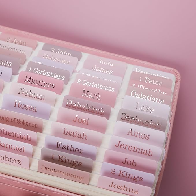 - Unique: Rose Gold Embossed Lettering.This is the ideal christian gi.ft. These unique Bible index tabs make a great gi.ft for your girlfriend, mum, kids, or anyone who loves beautiful things in life.