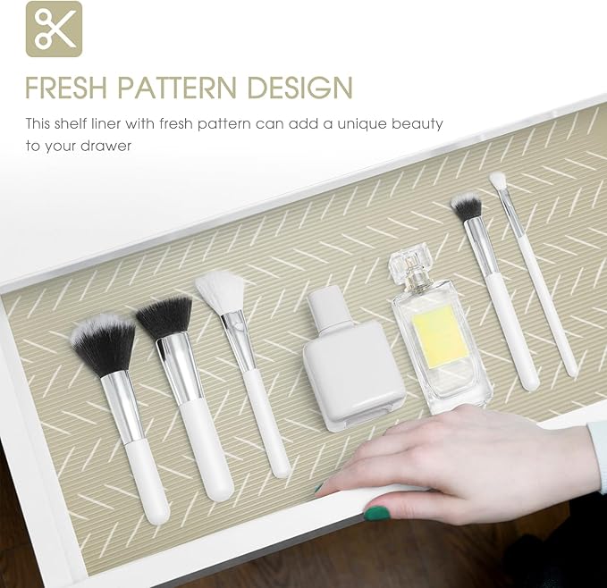 Glotoch Premium Non Slip Shelf Liner, Non Adhesive Drawer Liner, Waterproof Shelf Liners for Kitchen Cabinets, Drawer, Fridge, Wire Shelving, Pantry-12" X240", Heavy Duty, Beige Herringbone