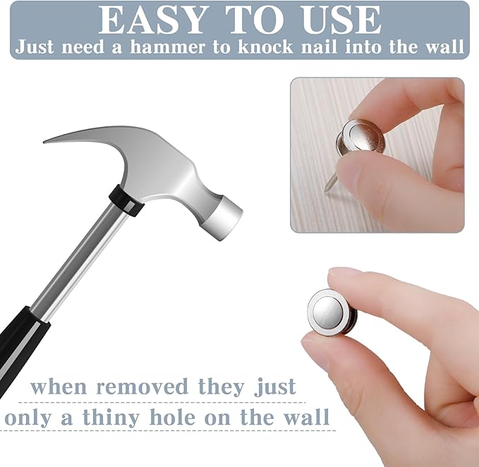 - Easy to Use: these wall tacks are suitable for wooden walls and drywall, and you can fix the photo hooks on the wall with a small hammer (not included); In addition, these hanging nails will only leave a small nail hole after removal, which will not ruin your wall or affect the beauty of the whole house