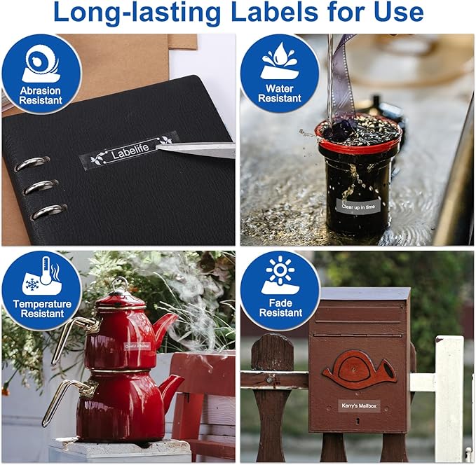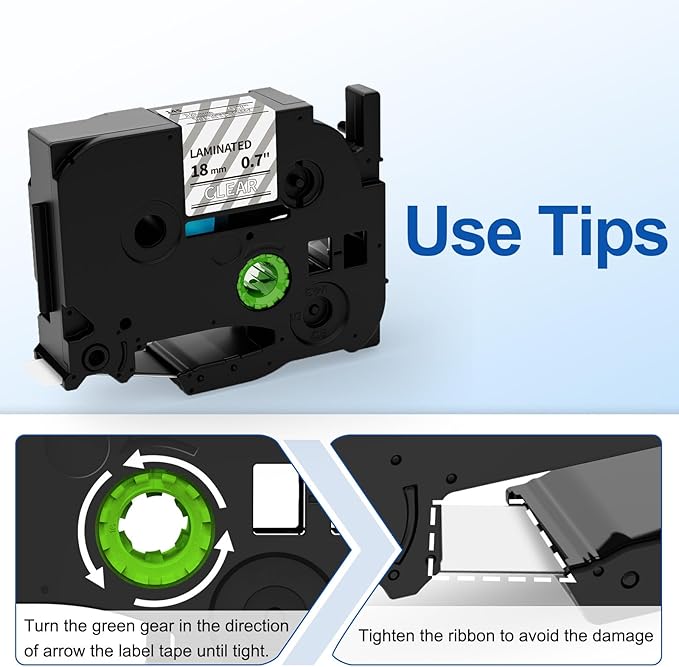 - [Kindly note] To keep the tze145 label tape with adhesion, please make sure that the sticking surface is clean and flat before labeling. These tz tape 18mm can stick very well to smooth surfaces, including paper, plastic, steel, wood and more