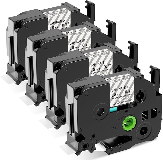- [Features] TZ laminated 18mm 0.7 white on clear that use thermal transfer printing technology are better for indoor and outdoor use. These print clearer and more durable labels in harsh environments. Withstand water, fade, abrasion,grease,high and low temperature, strong adhesive. The backing has a slit in the middle and easy to peel. No residue when removed