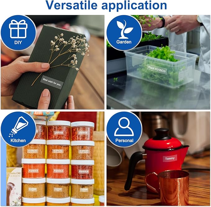 - [Application] Labelife compatible with Brother P touch 3/4 inch 18mm white on clear is good addition for business, home, office, shop, warehouse and more. 18mm label tape clear white is useful for labeling kitchen, shelving, cabinets, files, folders and accessories. Great for creating name badges and luggage labels and More
