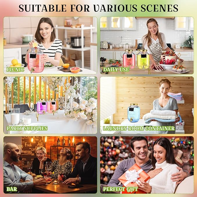 - Multi Functional: the 2 gallon glass water dispensers is suitable for holding various cold drinks in parties or bars, restaurants, such as milk, lemonade, juice, coffee, sangria, and more, it can also hold laundry detergent, for your daily life brings more convenience, warm reminder do not store hot drinks indoors