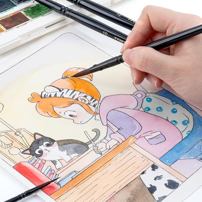 - Transon artist Round Paint Brush Set - Suitable for different painting medium: gouache, acrylic, watercolor, ink, tempera. These round brushes are suitable for all level of artists.