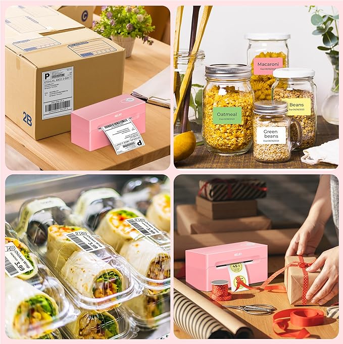 - [Wide Application Range, Meets Diverse Printing Needs] Efficiently prints shipping labels for e-commerce, warehouse management tags, product price stickers, and classroom teaching labels (suitable for teacher supplies). Supports labels 1.57"-4.1" wide (both fanfold and roll types), with flexible design of text, barcodes, and QR codes. This thermal label printer fits both home and business scenarios