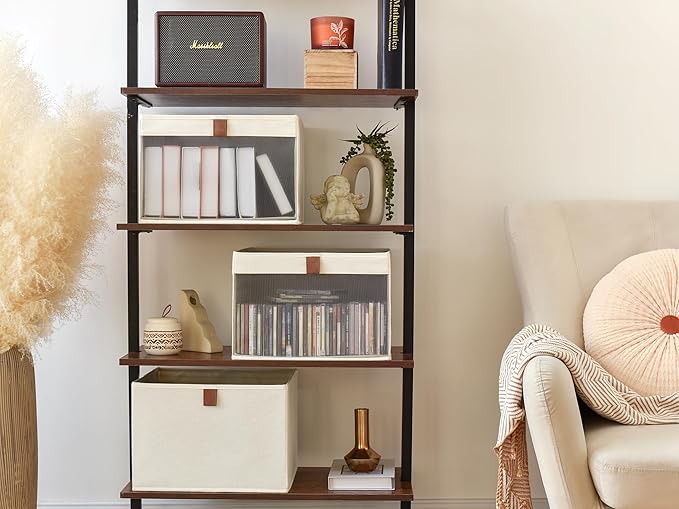 - The see-through window of the fabric shelf bins is made of highly breathable PVC mesh fabric with no chemical smell.