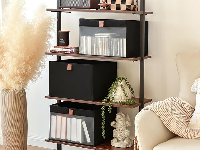 - The see-through window of the fabric shelf bins is made of highly breathable PVC mesh fabric with no chemical smell.