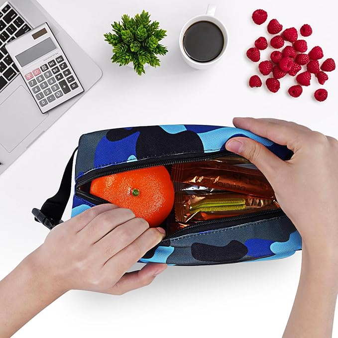 Cerbonny Small Insulated Cooler Bag, Freezable Lunch Bag for Work School Travel, 2.2L, Blue Camo