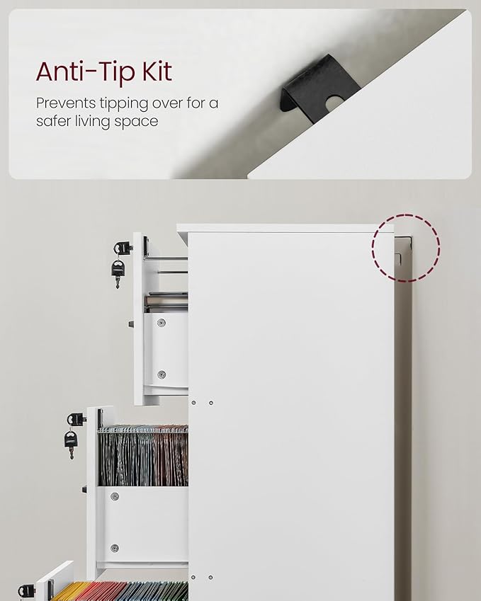 - [Safe Files, Safe Home] All 3 drawers can be locked separately to keep your various important papers safe. An anti-tip kit is included, so you can secure the vertical file cabinet to the wall for added safety