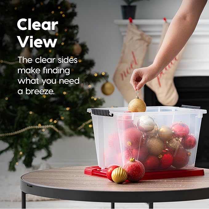 IRIS USA 19 Qt. Stackable Plastic Storage Bins with Lids, 4 Pack - BPA-Free, See-Through Organizing Solution, Latches, Durable Nestable Containers, Secure Pull Handle, Made in USA - Red