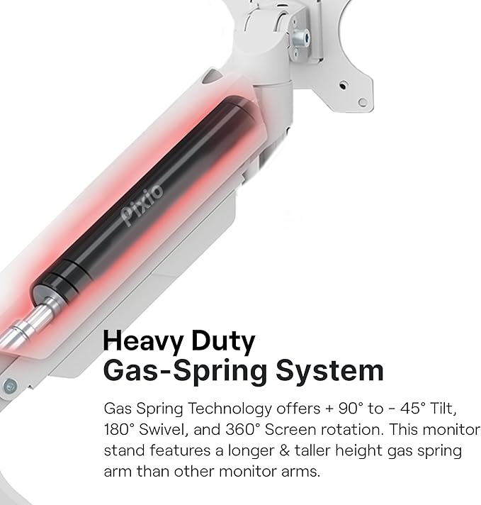 - Height & Articulation Adjustment: Gаs Spring Technology allows for no sagging during use. The arms offer full articulation: +90° to -45° tilt, 180° swivel, and 360° screen rotation. This monitor stand features a longer & taller height gas spring arm than other monitor arms, built for heavy duty application.