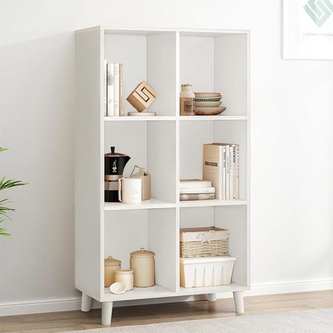 IOTXY Open Cube Low Bookcase - 3-Tier Freestanding Storage Display Cabinet Organizer with Legs for Home Office, 6-Cubes Open Shelf Short Bookshelf, White