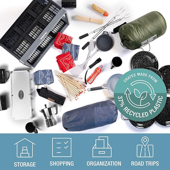 - COLLAPSIBLE & STACKABLE - To collapse, simply push from the bottom of the short sides to make the bins quickly fold flat; crates can be vertically stacked up to 3 high when open or closed with their interlocking nesting system design