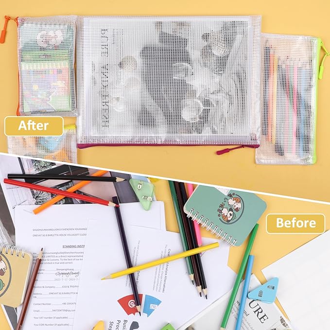 - SORTING & STORAGE:With the help of our mesh bag, organizing and storing your belongings becomes a breeze. Whether it's small accessories, cosmetics, or even travel essentials, our storage bags with zippers provide a convenient solution for keeping everything in order