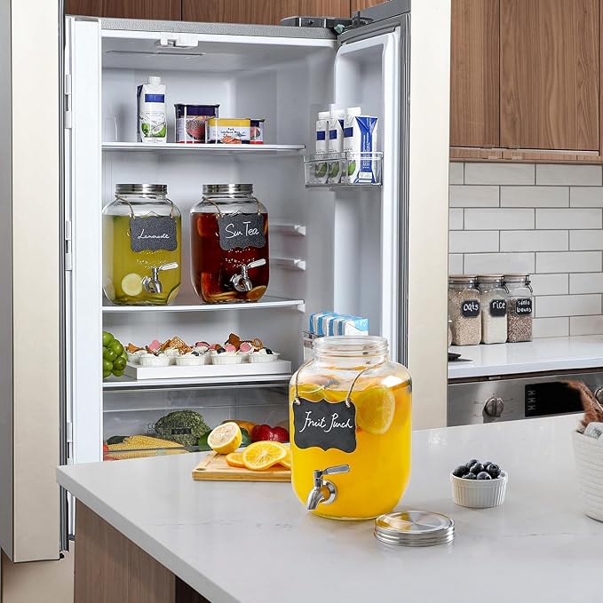 1 Gallon Glass Beverage Dispenser, 18/8 Stainless Steel Spigot and Lid, Glass Drink Dispensers for Parties, Mason Jar Drink Dispensers with Lids