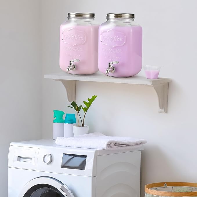 2 Gallon Glass Beverage Dispenser, 18/8 Stainless Steel Spigot and Lid - Glass Drink Dispensers for Parties - Mason Jar Drink Dispensers with Lids - Laundry Detergent Holder