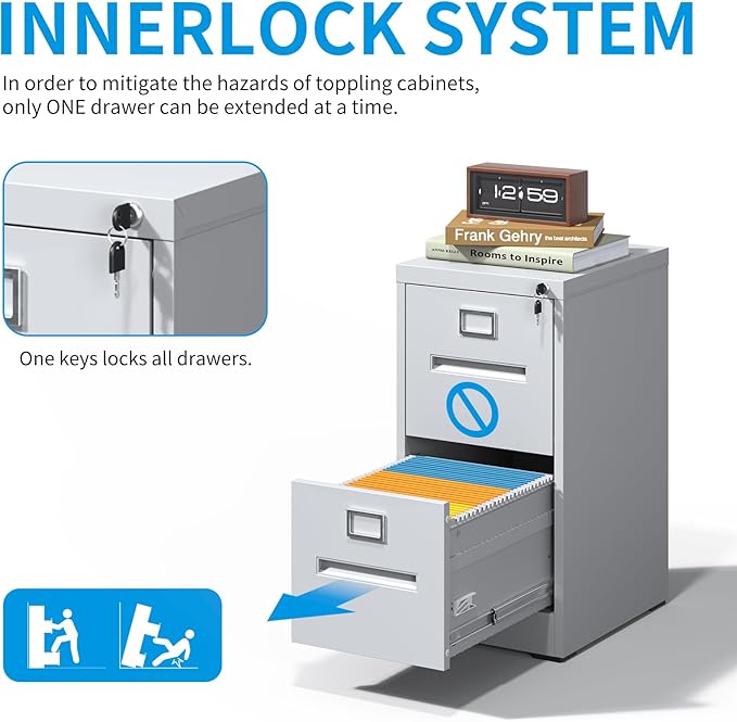 - 【Noiseless & Anti-Tipping Design】The smooth, quiet sliding rails make opening and closing drawers effortless and noise-free. The metal filing cabinet features a one-drawer-at-a-time mechanism, which prevents multiple drawers from being opened simultaneously. This design ensures the cabinet remains stable and reduces the risk of tipping, even when fully loaded. This thoughtful design ensures that your files are not only well-organized but also safely stored.