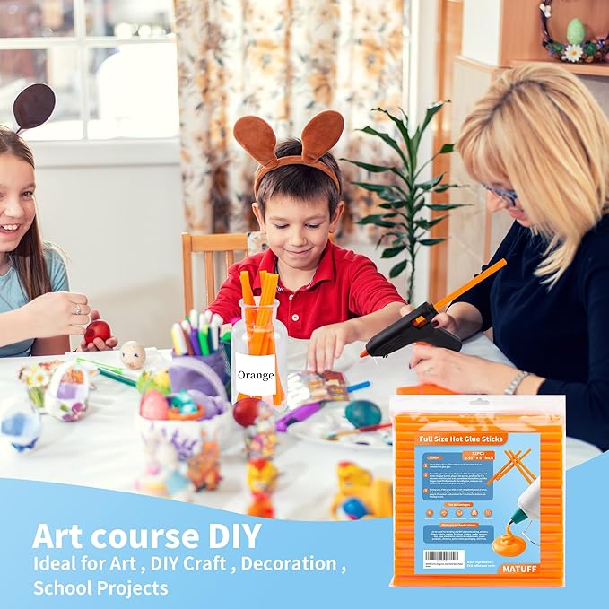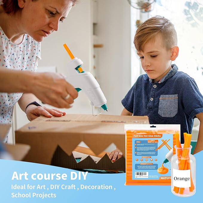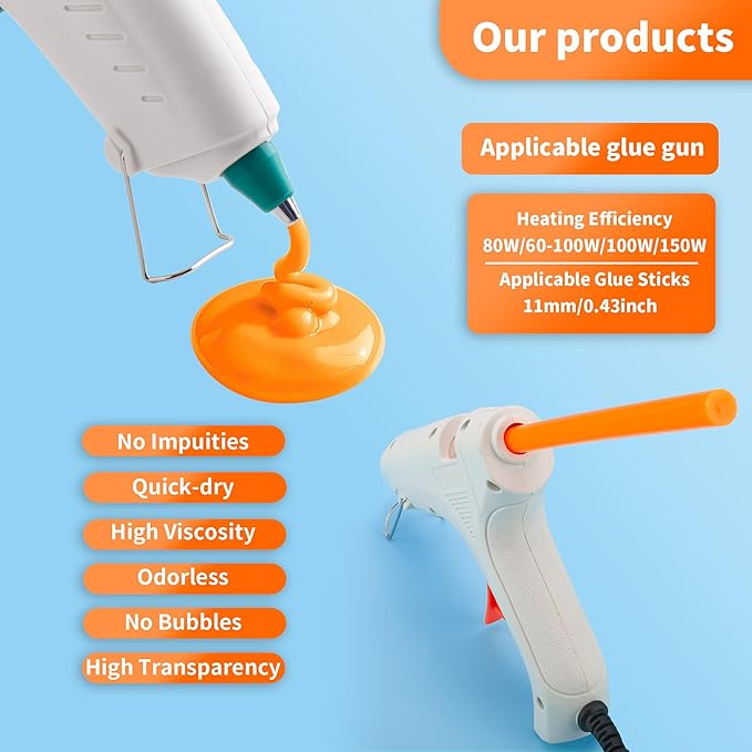 - 【Value Pack】2.1lb 52 pcs Orange hot glue Sticks Full Size, 11mm/0.43 inch diameter and 200mm/8 inch Length, Long hot glue sticks smooth operation, No need to change glue sticks Frequently, for variety holiday decorations, crafts, arts creation gluing projects and most repair use