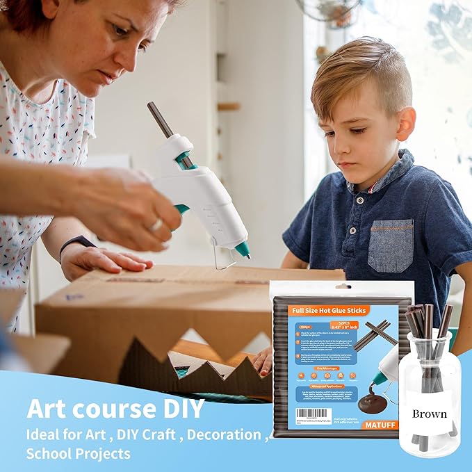 MATUFF Brown hot Glue Stick Full Size 0.43” Dia x 8” Long, 52 pcs Hot melt Adhesive Glue Sticks, Colored Glue Gun Sticks for Christmas Decoration DIY Crafts Arts School Home Gluing Project