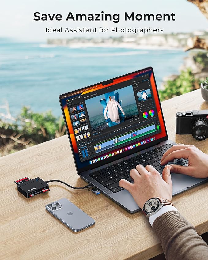 - 【Wide Compatibility】This memory card reader is compatible with laptops, tablets, smartphone with USB-C port, such as MacBook Pro, MacBook Air, iPad Pro 2022/2021/ 2020/ 2018, iPad Air 5/4, Galaxy S22/ S21/ S20/ S10/ S9/ Note 10, Redmi Note 10 Pro/ Note 9/ Note 8, Surface Pro, Surface Book, Huawei P50/ P40/ P30/ P20 etc.