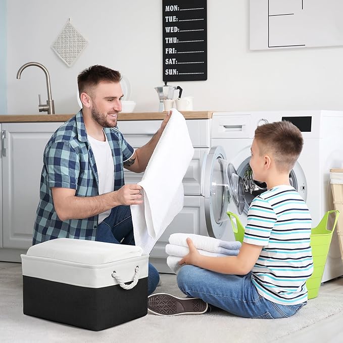 TheWarmHome Organization and Storage Basket for Organizing - Jumbo 3 Pack 17.7x13.8x9.7 inch Fabric Storage Cubes for Closet Gifts Organizer Empty Book (White & Black)