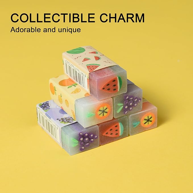 - Kawaii pencil jelly erasers featuring fruit designs that brighten up school supplies