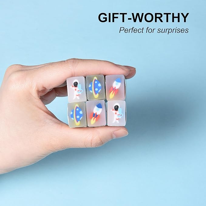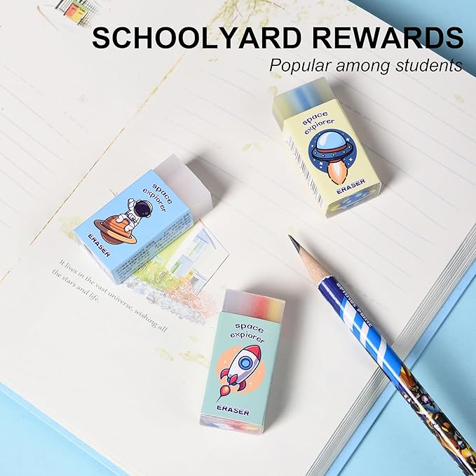 - Explore the cosmos with our 18-piece cute outer space themed erasers β perfect for kids!