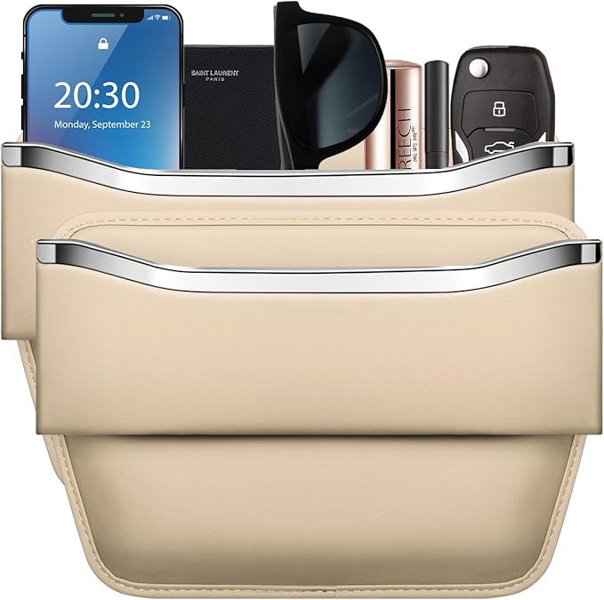 HOLDCY Car Seat Gap Filler Organizer - Leather Console Side Pocket Seat Storage - Stylish and Practical Car Accessories for Cars,SUV,Truck (Beige - 2 Pack)