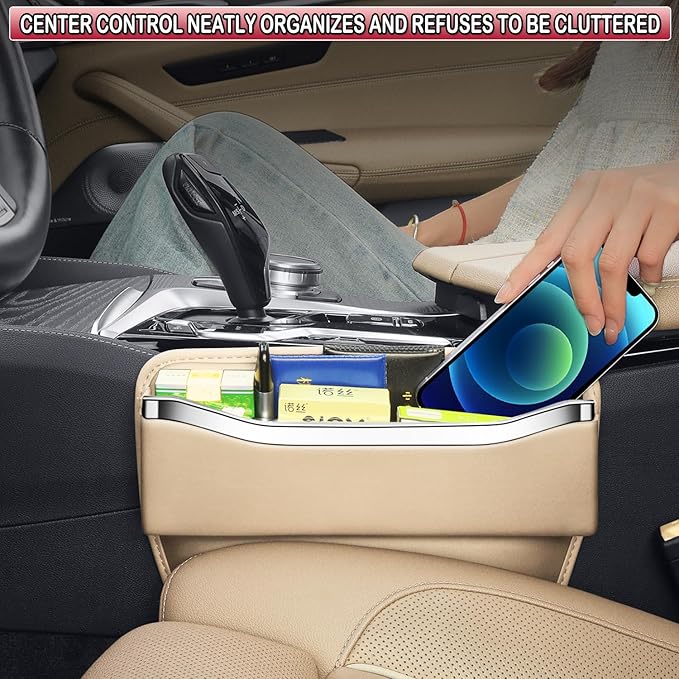 - Console Side Pocket Seat Storage: The car seat gap filler organizer has a convenient side pocket that can store your phone, wallet, keys, cards, coins, and other small items.