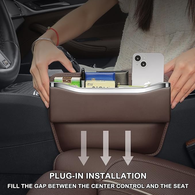 HOLDCY Car Seat Gap Filler Organizer - Leather Console Side Pocket Seat Storage - Stylish and Practical Car Accessories for Cars,SUV,Truck (Brown - 1 Pack)