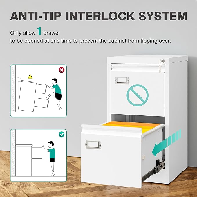 - ✔️☆【Anti-tilt Mechanism】: All drawer interlocking mechanisms are designed to prevent tilting and ensure that only one drawer can be opened at a time; the file cabinet has 1 lock and 2 foldable keys to effectively protect your private documents and valuables. It is suitable for various scenes such as offices,
