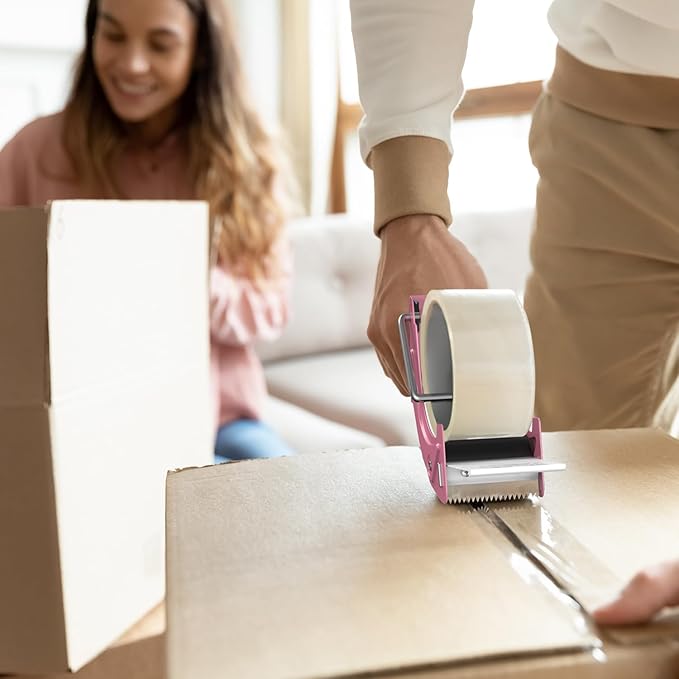 2 Pcs Rapid-Replace Packing Tape Dispenser Guns with Extra Blade, 2IN(50mm) Lightweight Ergonomic Industrial Handheld Heavy Duty Tape Cutter for Carton, Packaging and Box Sealing Pink