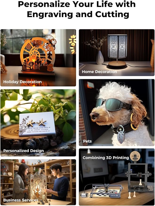 - Cutting-Edge Precision: Featuring an improved 6-lens array that focuses down to a tiny 0.06mm spot, our engraver breat life into every detail. From capturing the intricate patterns in pet hair to etching fine art, we've got you covered