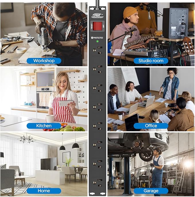 - [Versatility] - Makes it an ideal choice for a wide range of settings, including homes, garages, school, office and workshops. Whether you're working on a DIY project in your garage, or running power tools and machinery in your workshop, this metal power strip can handle it all.