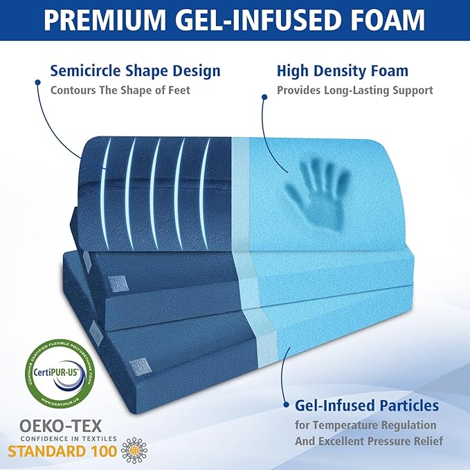 - [Supportive High Density Foam] The foot rest under desk utilizes gel-infused high-density foam. Compared to ordinary foam, high-density foam provides better support, less deformation, and greater resilience. Additionally, the filled gel particles effectively regulate temperature and pressure relief.