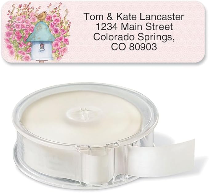 - Each roll of customizable address labels includes 250 stickers on a clear acrylic dispenser for quick and easy application