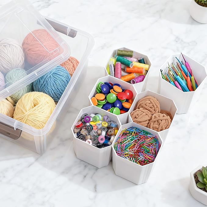 - 【6 Detachable Tall Inserts】These inserts help separate the craft storage containers into multiple organized sections. This prevents the items from moving around and getting mixed up in a container. The plastic storage bins with dividers can also be used in drawers and desktops;