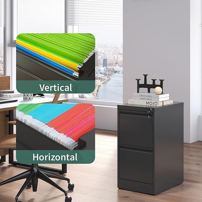 2 Drawer File Cabinet with Lock,Metal Vertical Filing Cabinets for Home Office,Heavy Duty File Storage Cabinet for Letter/Legal/A4/F4 Size File,Assembly Require (Black, Vertical 2 Drawer)