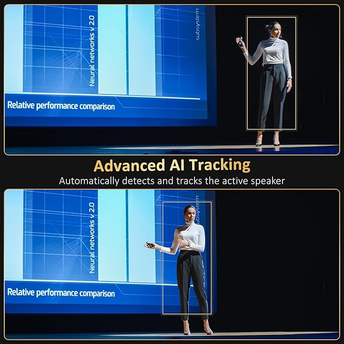 - 【PTZ Camera with AI Auto Tracking】Harnessing advanced AI Algorithms 3.0, this camera achieves monocular human auto-tracking, smoothly capturing movements with superior quality. Supporting Full HD 1080P video output at up to 60fps, it delivers true-to-life colors. It's ideal for Church live services, Schools, Live Streaming, Broadcasts, Hospitals, Weddings, and Houses of Worship.