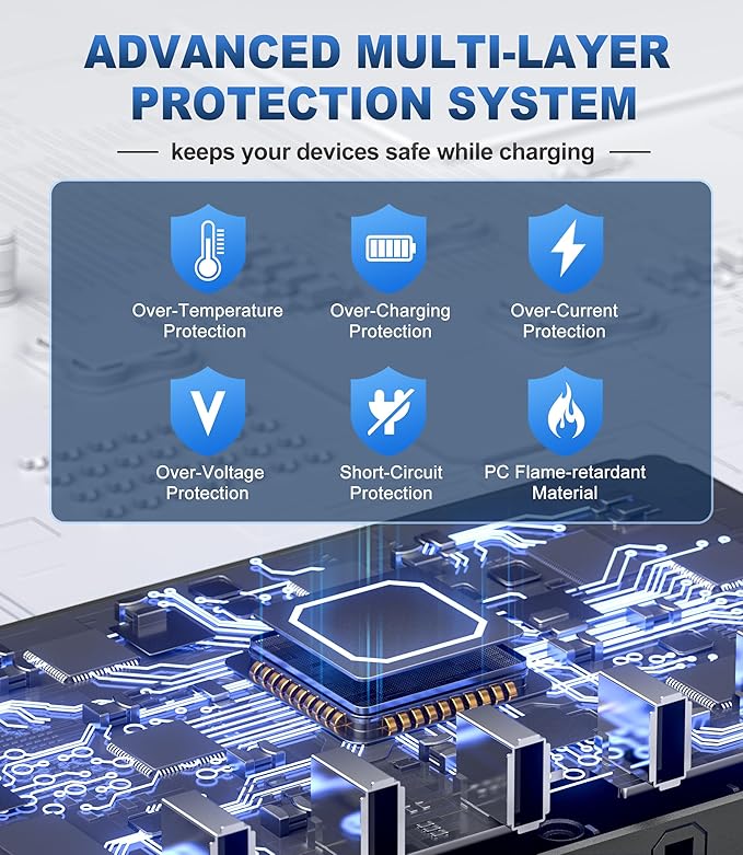 - Charging Dock With Built-In Safety System: The Honcila multiple charging station is constructed from premium PC composite flame-retardant material. Combines surge protection, fire resistance, overload protection, temperature control, and more to provide a secure and efficient charging solution for your devices