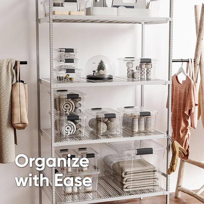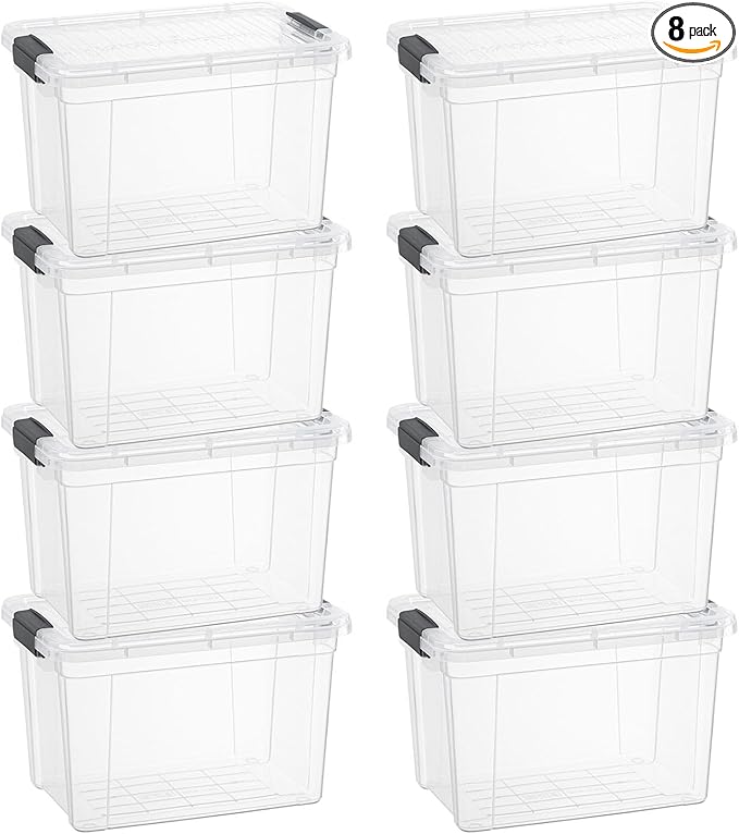 Superio Storage Bins with Lids- 8 Pack, 4.75 Qt Clear Boxes for Organizing, Stackable Plastic Containers- BPA Free, Non-Toxic, Odor Free, Organizer for Home, Office, Dorm
