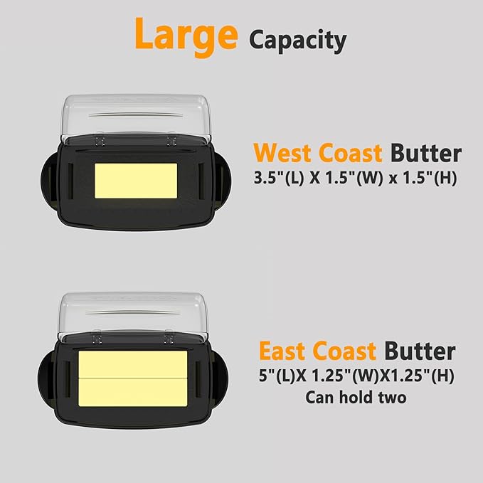 - šš¦š¶šš²š & š¦ššš¹š²š-Our butter dish holds either 8 oz cubes of butter or 4 oz butter sticks. Butter non-slip area measures approximately 5.5 x 2.5 inches long and wide. The simple and modern design is suitable for most home countertop styles and different occasions. You can keep it in the fridge, on the countertop, or take it out at a picnic. This is a great gift for family or friends.